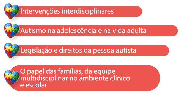 multidisciplinares das áreas da saúde e da educação. Entre os temas